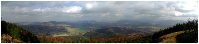 po červené (naučná stezka Veřovické vrchy) přes Kamenárku, Dlouhou, Krátkou, Huštýn, Trojačku až na Trojačka rozcestí