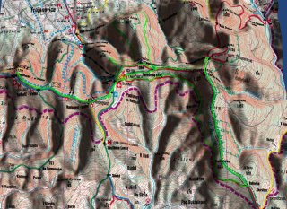 3D pohled na trasu v turistické mapě